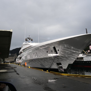We drove around so that I could get pictures from the other side of the harbor, and drove up to look at a super yacht that was docked. Honestly, this thing was so big that it almost boggles the mind. Of course, there was a helicopter on deck.